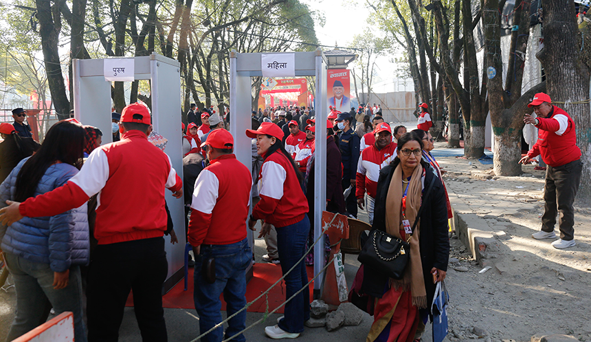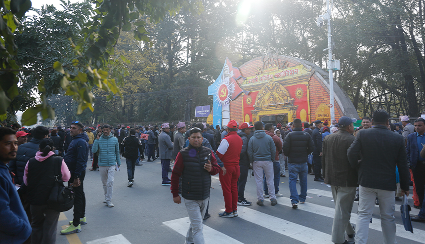 २८ मंसिर,काठमाडौं । नेकपा एमालेको ११ औं महाधिवेशनको दोस्रो दिन अन्तर्गत आज बन्दसत्र भृकुटीमण्डपमा हुँदै छ । बिहान ८ बजेबाट बन्दशत्र शुरु गर्ने भनिएपनि केन्द्रीय समितिको बैठक बस्न ढिलाइ भएका कारण दिउँसो १ बजेका लागि बन्दसत्र सारिएको छ । तथापी महाधिवेशन प्रतिनिधिहरु भृकुटीमण्डपमा भेला भेरहेका छन । भृकुटीमण्डपमा अहिले चहलपहल बढेको छ ।